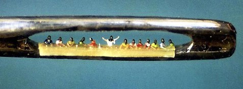 Willard Wigan is an English Sculptor from Ashmore Park Estate, England. His sculptures are typically placed in the eye of a needle or on the head of a pin. His sculptures are so minute they are only visible through a microscope.