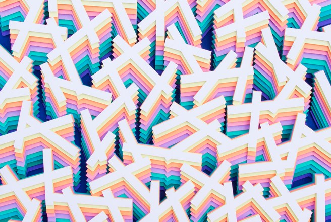 She sculpts it in 3D layer after layer, by superimposing paper and colors to create inspired patterns in volume.
