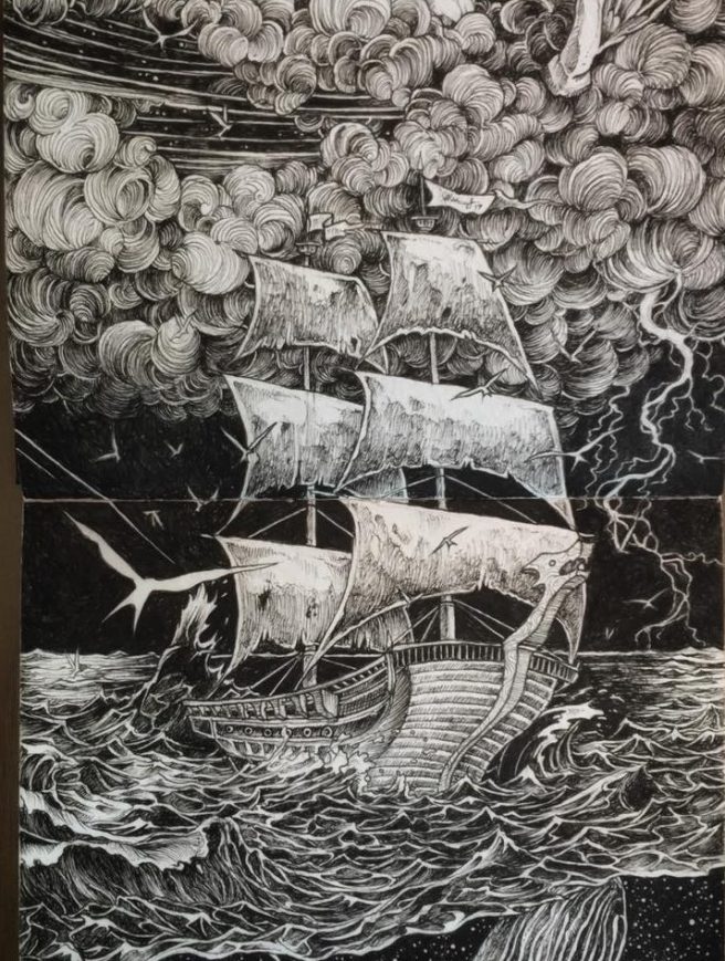 Using Uni Pin drawing pens, Rosanes is able to transport viewers to a world of designs, characters, and  drawings that present a mesmerizing view with every angle.