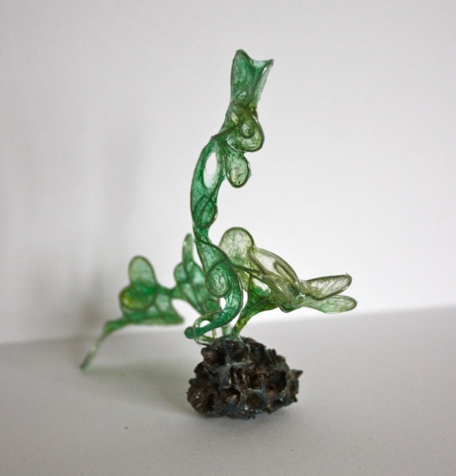 She works with photography, painting, and glass works.