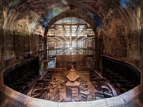 French photographer Francis Meslet roams the world searching for abandoned places and striking architectural structures.Like time capsules, testifying to a parallel world and perfect for enabling the mind to wander and ponder, Meslet’s melancholic images brave the passage of time, making way for silence after the memories often left behind by human habitation.In these deserted places, no more than the rustling of the wind can be heard through a broken window or the sound of water dripping from a dilapidated ceiling.These silences nonetheless invite the spectator to slip into these well-guarded and mysterious places captured by the photographer and attempt to bring to life that which has been forgotten.
