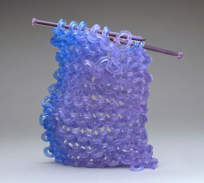 Determined to combine her passion for knitting with her love for cast glass sculpture, she developed a variation of the lost wax casting process to cast knitted work in glass.