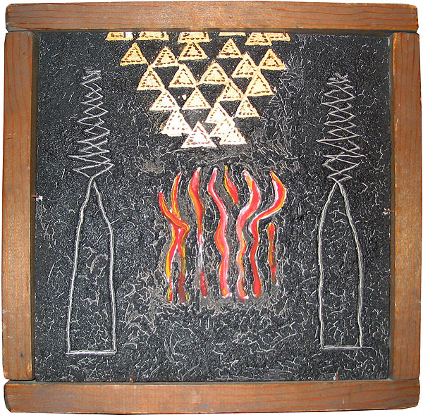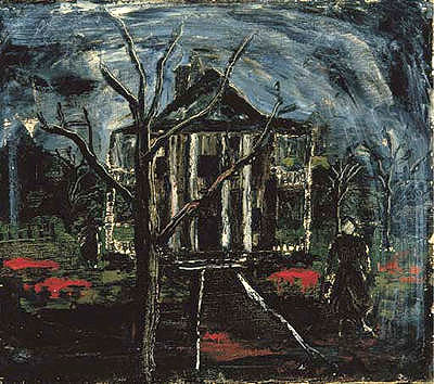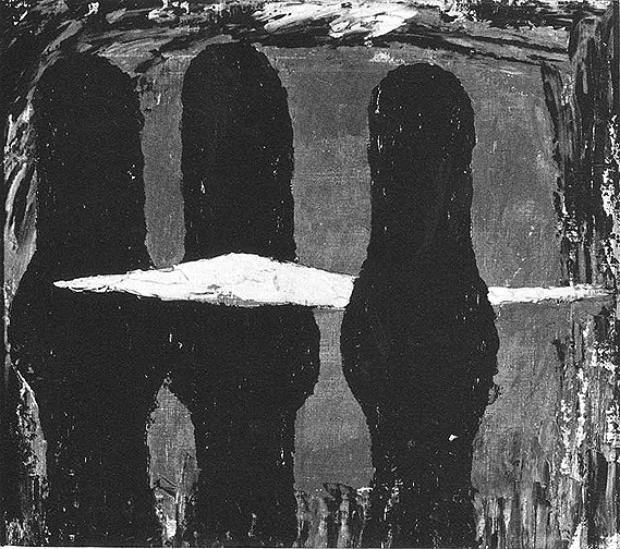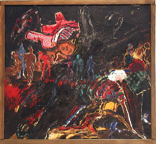 Bess made his own frames and worked mostly with dark, brooding pigments, which he sometimes mixed with sand or varnish for texture.