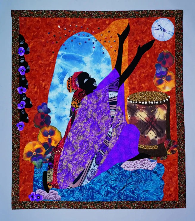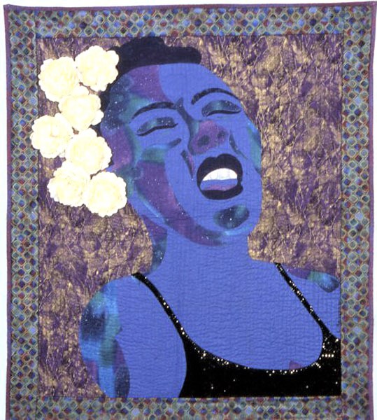 Her pictorial narrative quilts make plain her personal themes: family life, women’s rights, political freedom, and musical legacy.
