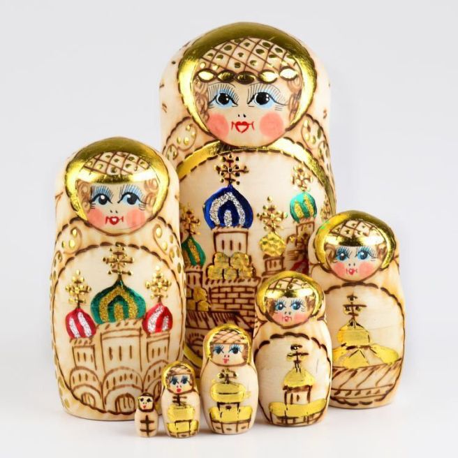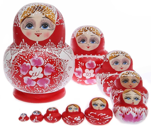 You can learn more about Russian Stacking Dolls at https://www.therussianstore.com/blog/the-history-of-nesting-dolls/.