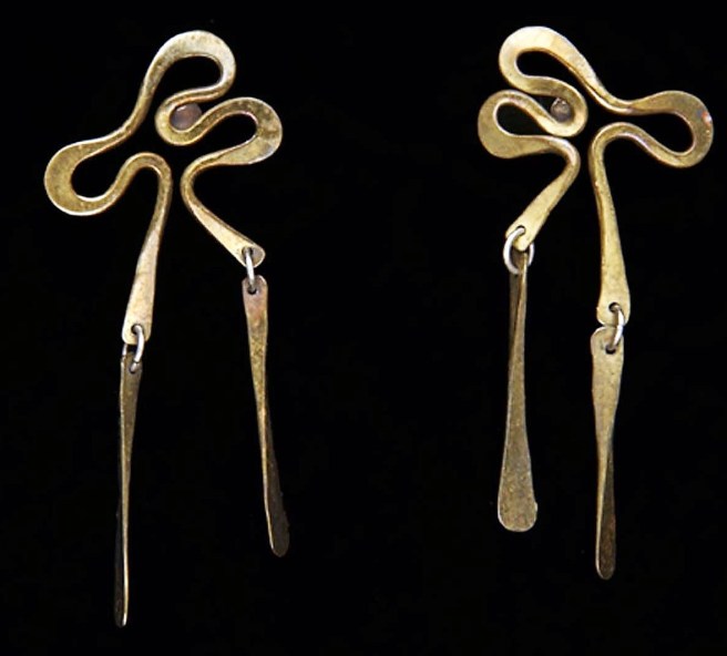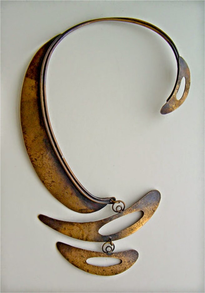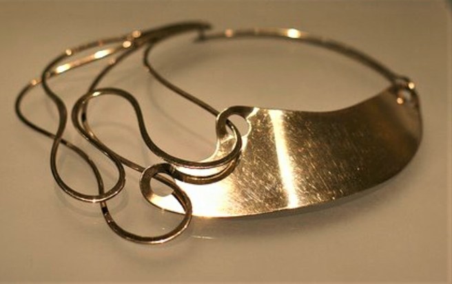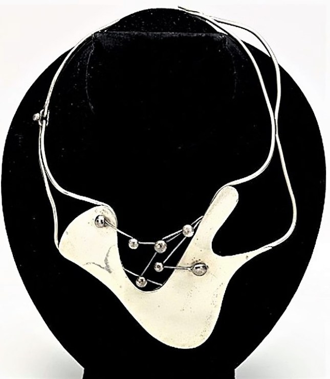 His jewelry explored organic shapes and both positive and negative space on several planes.