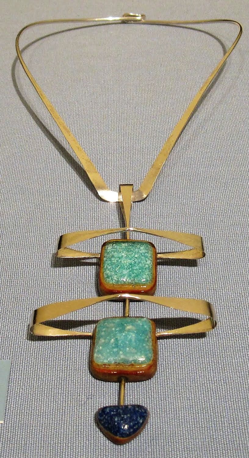 His jewelry explored organic shapes and both positive and negative space on several planes.