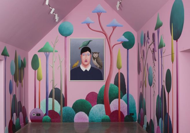 His unique visual language has coalesced in a universe of fantastical characters and motifs where perspective is heightened and skewed to uncanny effect.