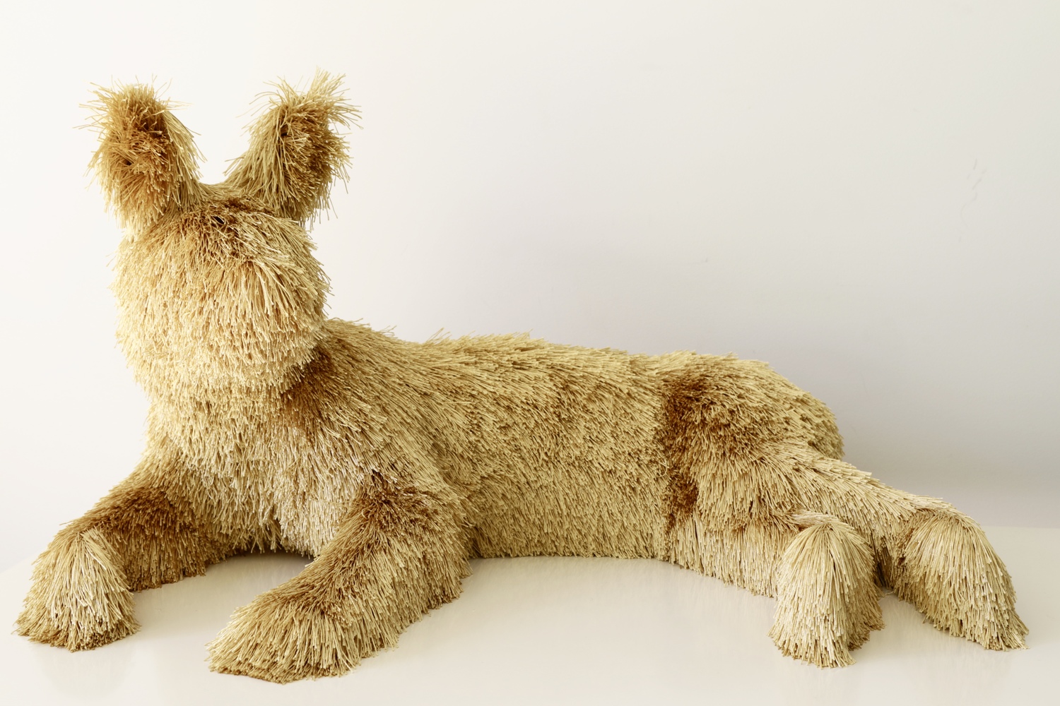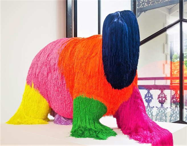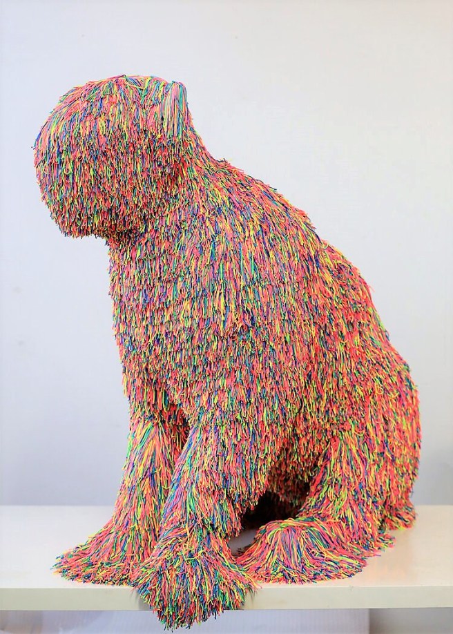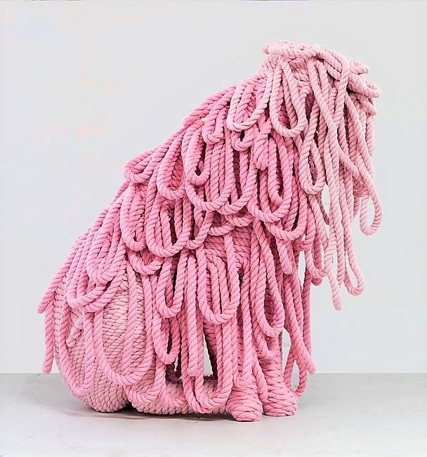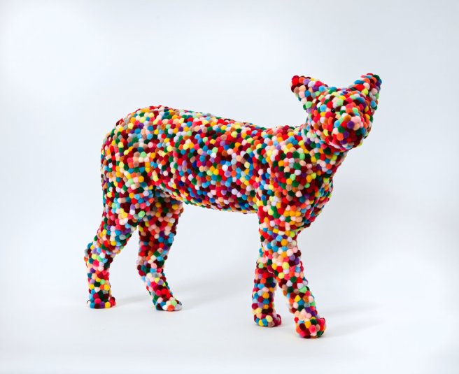 He combines combining these materials with animal forms, a kind of pelt, where the fabric creates a textile mass over the animal.