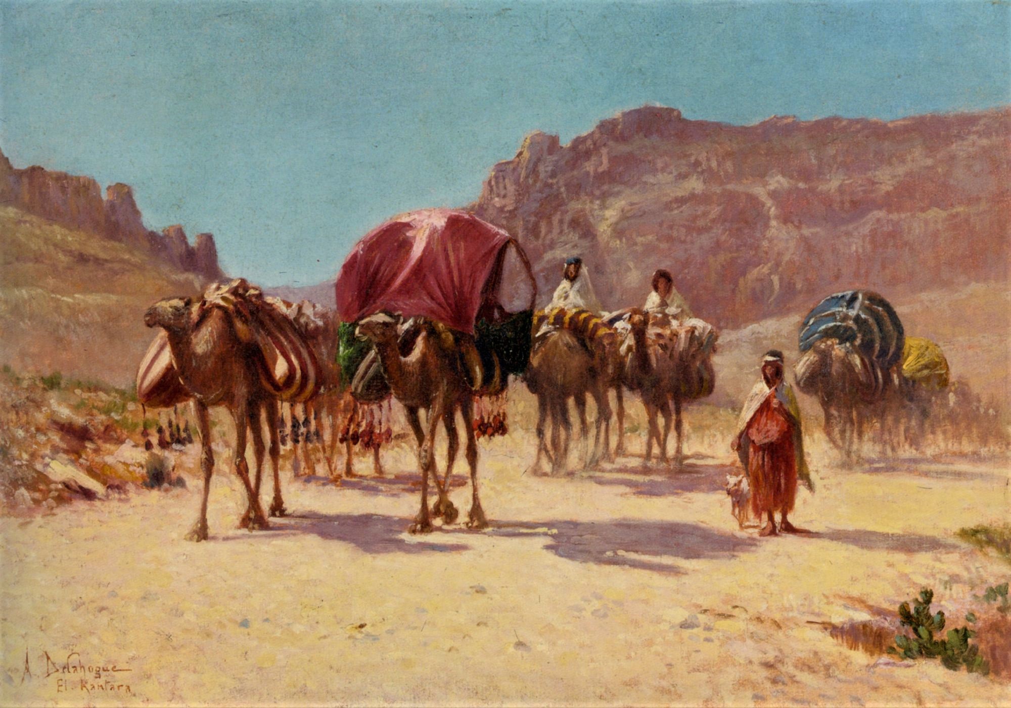 He delighted in painting camels, desert caravans, oases, and various personalities he met on his travels.