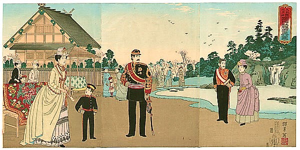 Yasuji Inoue (1864-1889) was born in Tokyo,  the son of a dry-goods merchant in Asakusa.Inoue became a student of Kobayashi Kiyochika, master of traditional Ukiyo-e painting and printmaking.Drawing heavily on Kiyochika’s style and experimentation with Western art elements, Inoue’s own experiment with light and shadows reflected the influence of French Impression, a departure from traditional ukiyo-e.He produced large-sized Kōsen-ga pictures that faithfully followed the painting style of Kiyochika.In 1884 Inoue changed his style and turned to conventional nishiki-e (a type of Japanese multi-colored woodblock printing) triptychs depicting the sights and events of the day in the traditional heroic style.Sadly, he died prematurely in 1889 at the age of twenty-five.At the time of his death he showed great promise in the woodblock print field and would have likely continued as a major artist in Japanese woodblock prints.One can only imagine the heights he would have reached if life had been kinder.More of Yasuji Inoue’s artwork can be found at https://ukiyo-e.org/artist/inoue-yasuji  and https://moderntokyotimes.com/japan-art-and-inoue-yasuji-art-of-tokyo/.