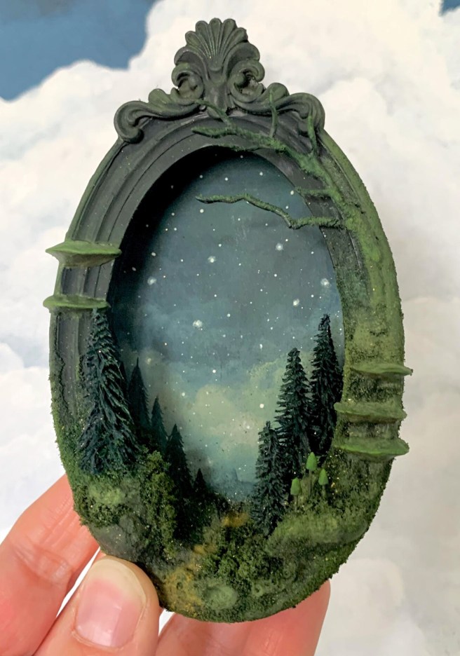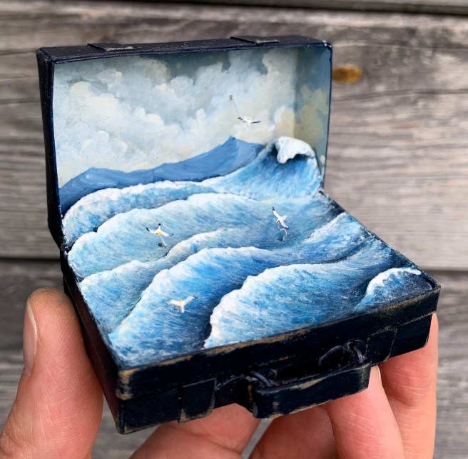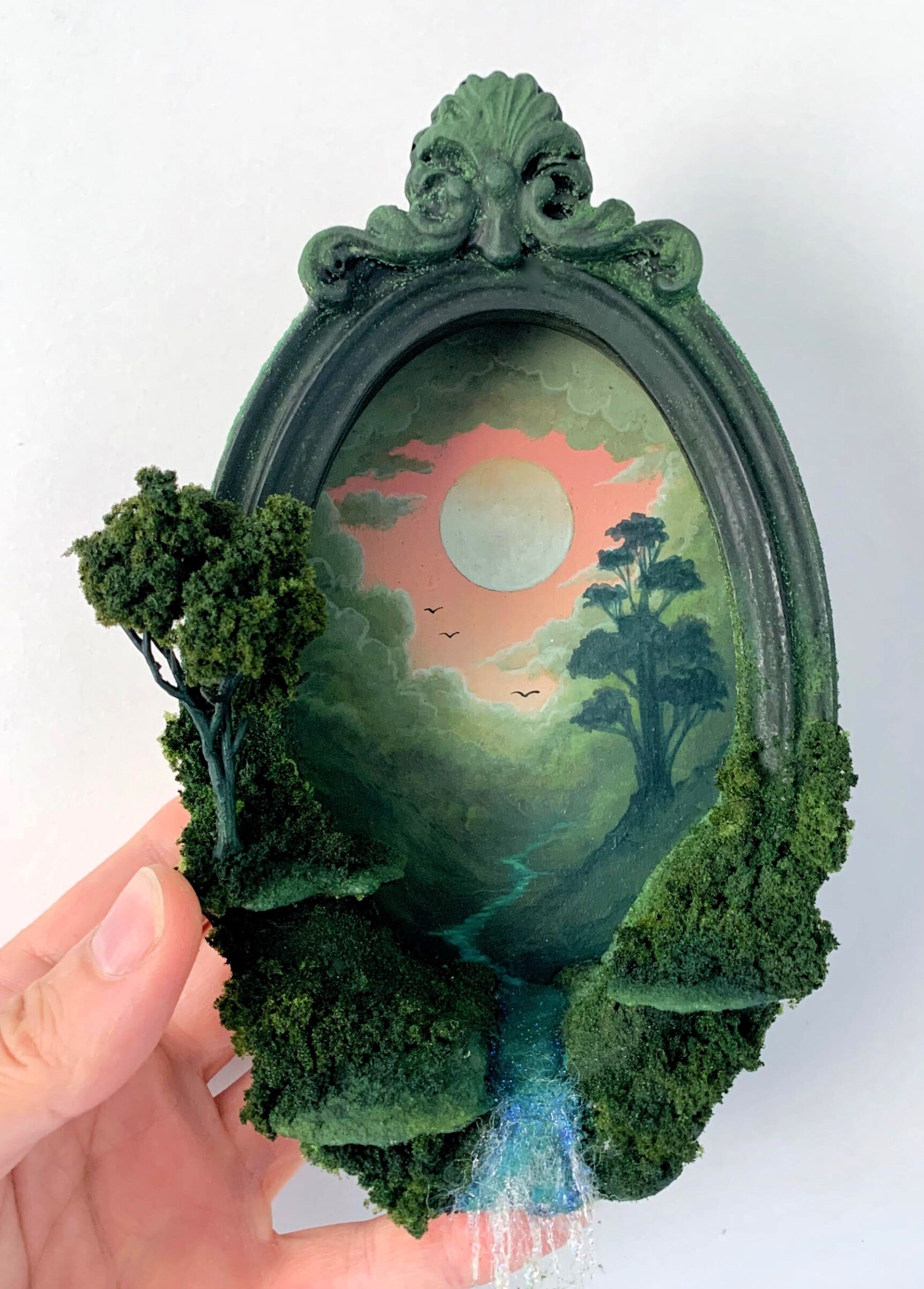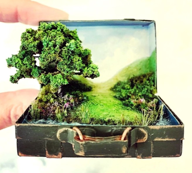 Caroline Dewison is an artist from  Warrington, England,  whose love of nature has culminated into a world of small miniatures.In the realm of craft and design, Dewison pushes boundaries and create extraordinary pieces that captivate the imagination.For several years, the Warrington-based artist experimented with beads and clay to make small sculptures, but she was never quite satisfied.Inspired by the woodlands around her home and holiday walks through the Lake District,Dewison began to recreate mystical scenes of streams, shorelines, and hills in miniature.Using Jesmonite — a mixture of gypsum and water-based acrylic resin — to fashion frames, plus a lightweight MDF for the backgrounds, Dewison sources a range of small boxes, model-making supplies, and acrylic paints to create each intricate scene.For landscapes, she particularly enjoys using a type of clay that melds the malleability of clay with the strength of epoxy, plus a favorite 3D-printing pen.Dewison brings imagination, reality, and a certain finesse to her miniatures,“I didn’t really set out with the intention of making miniatures,” the artist shares.“They just turned out that way.”More of Caroline Dewison‘s magical miniatures can be found at https://www.ahouseofwonders.co.uk/.