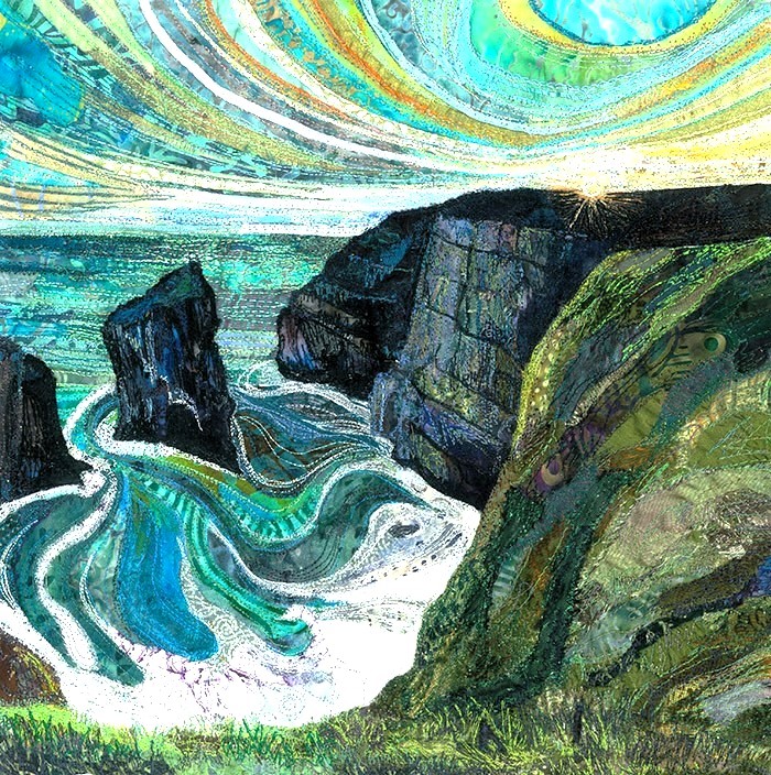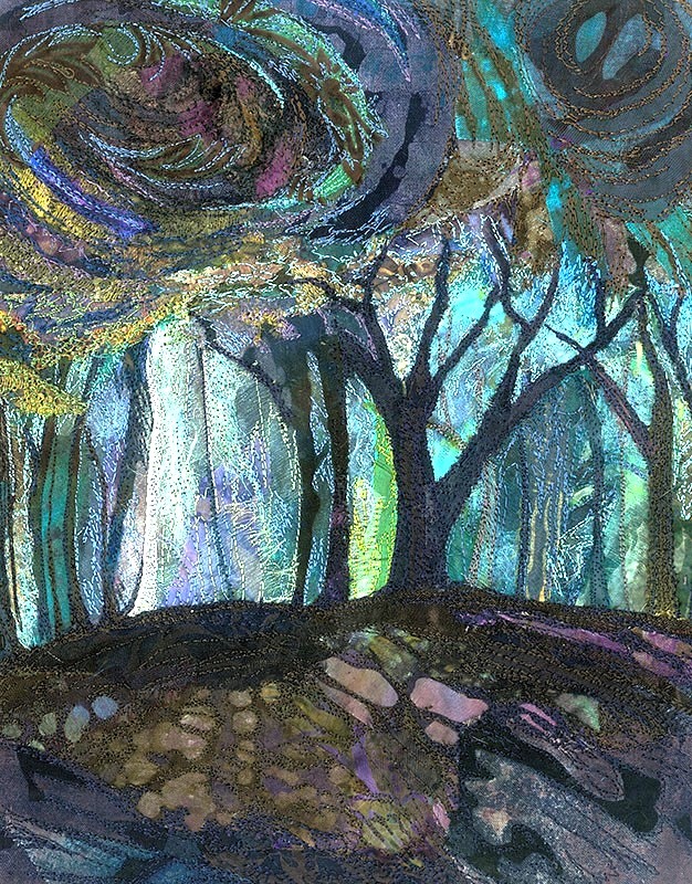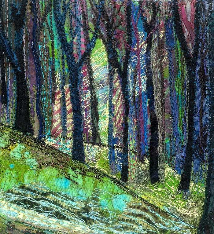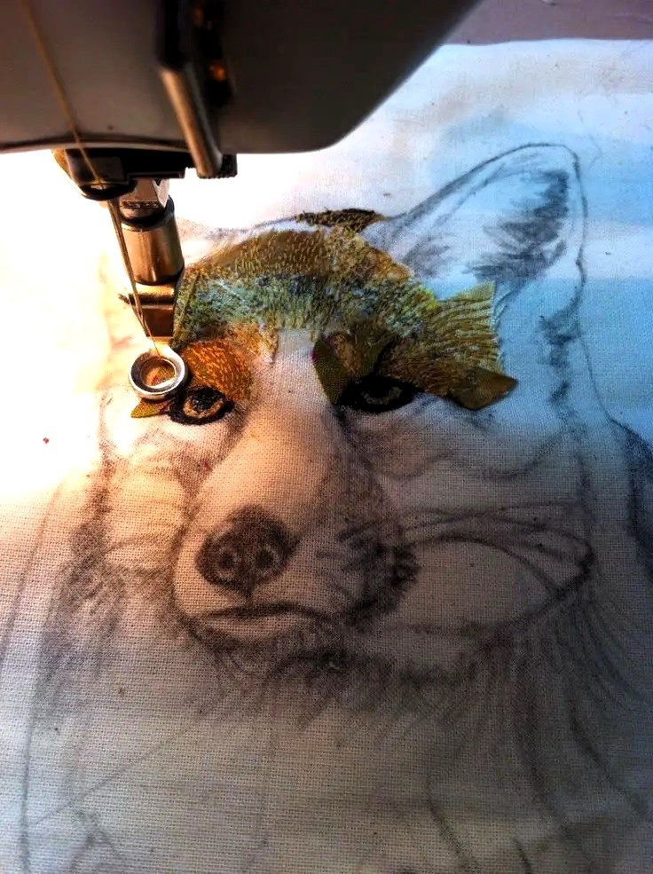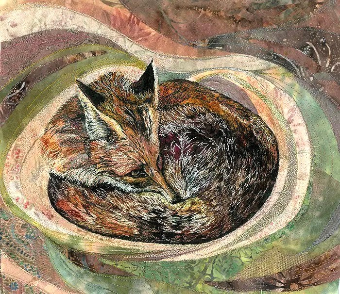 Her beautiful machine embroidery often depicts nature, and the combination of her attention to detail and artistic flair makes her work incredibly life like while elevating the subject into vivid and compelling images.