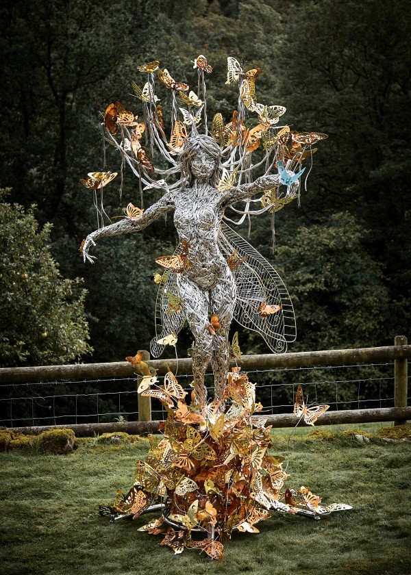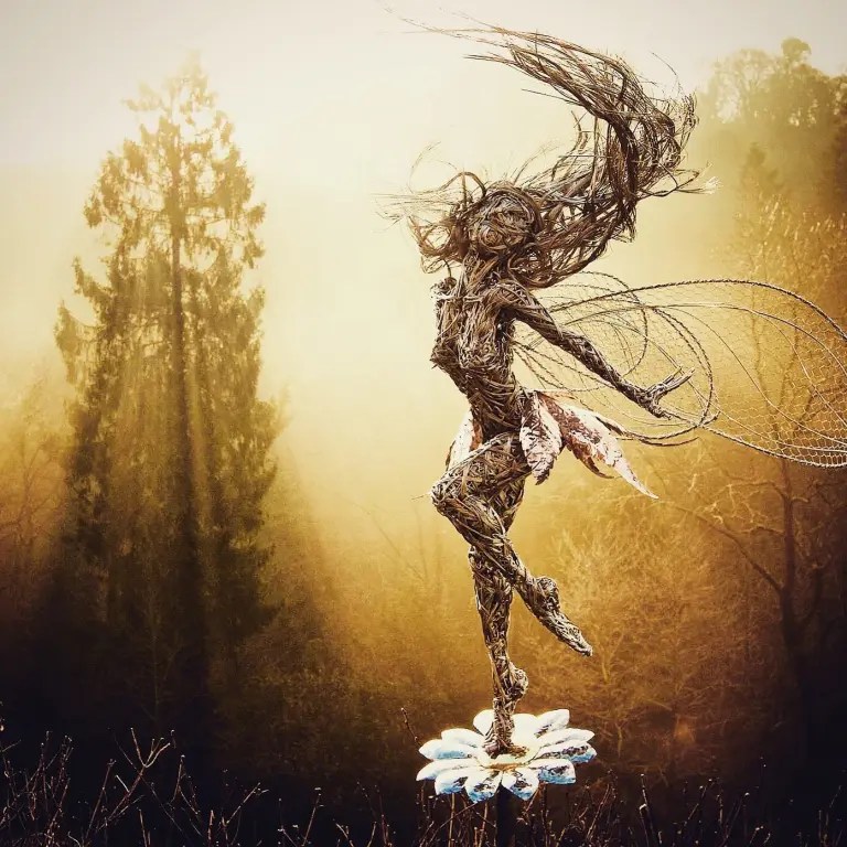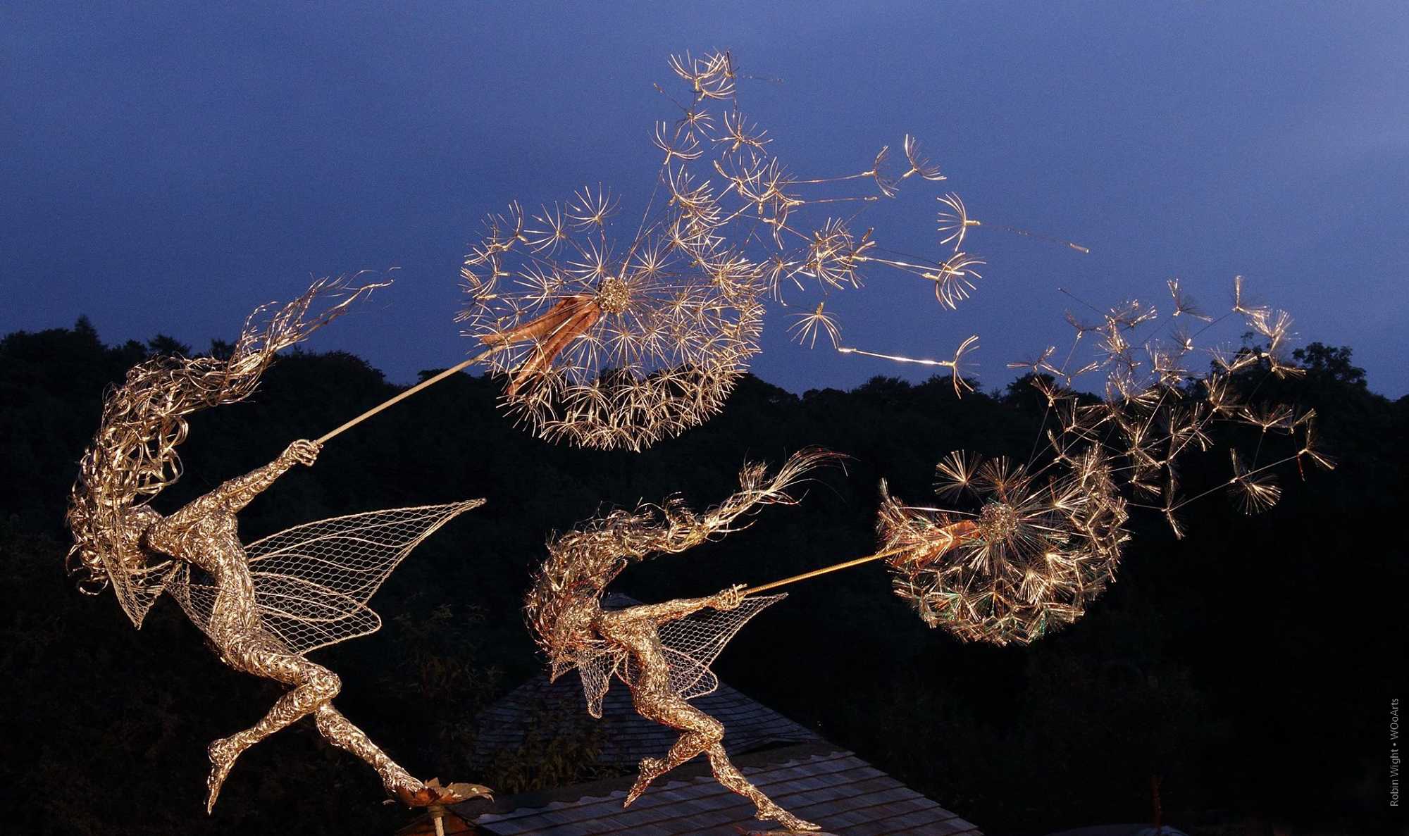 Wight is known for creating stainless steel wire sculptures which depict fairies.