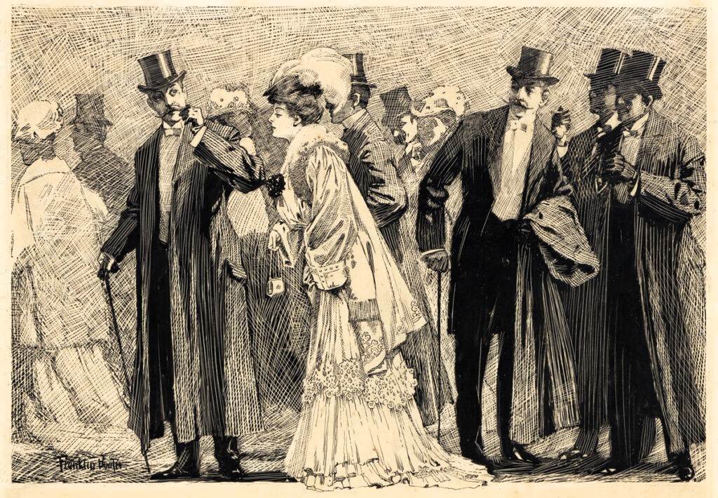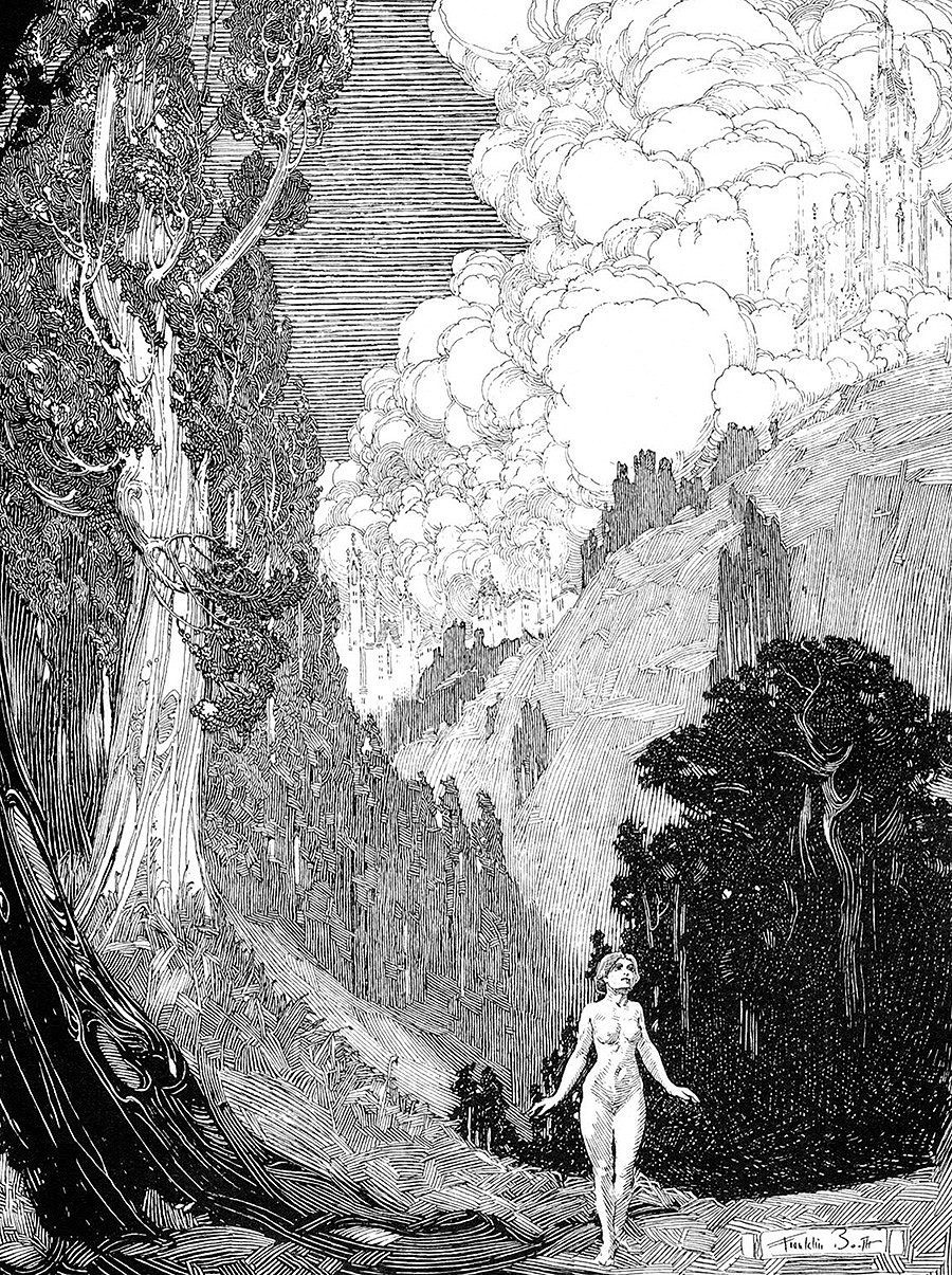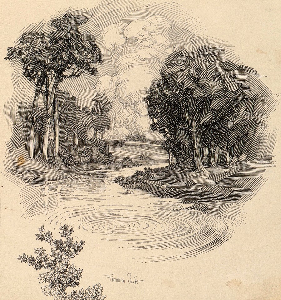 Franklin Booth (1874 –1948) was an American artist and illustrator who was renowned for his intricate and detailed pen and ink illustrations.Booth  began his career as a newspaper artist, but quickly gained recognition for his unique and timeless style. His works were characterized by fine lines, delicate shading, and clever use of negative space, which created striking and visually appealing compositions.Booth’s style of pen-and-ink line drawing distinctively evokes the linework of old woodcut engravings. With calculated placement and spacing of pen lines, Booth’s drawings encompassed ranges of tonal value and density.Instead of using broad strokes or washes of ink to create shadows and form, the artist used a dense network of delicate lines.His lines would follow the surface of whatever he was depicting, making fur look soft, wood look grainy, and fabric look smooth or rough. Booth was a master of composition, using color and line to create emotionally resonant visuals that captured the imagination of his audience.More of Franklin Booth’s amazing line drawings can be found at https://www.artnet.com/artists/franklin-booth-2/.