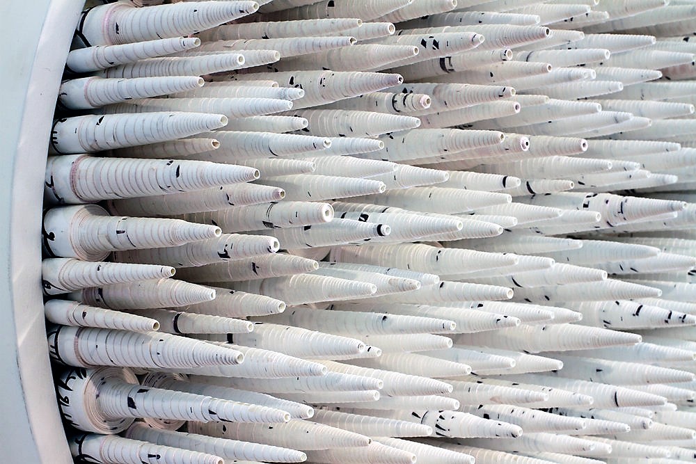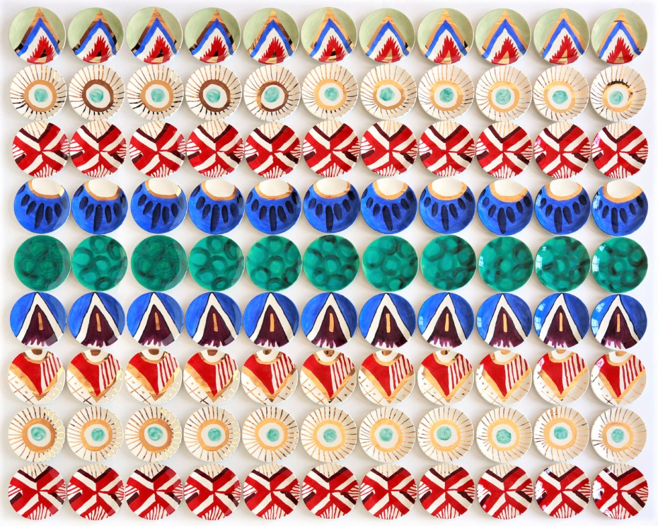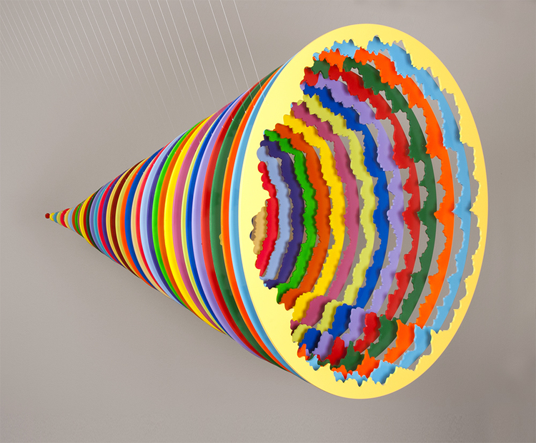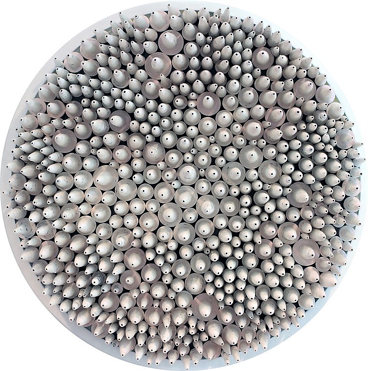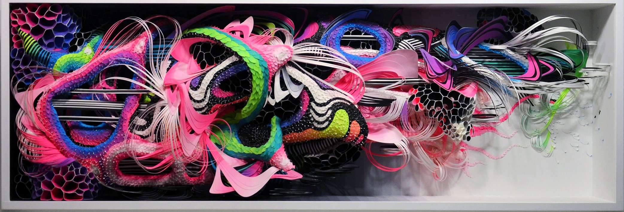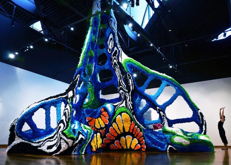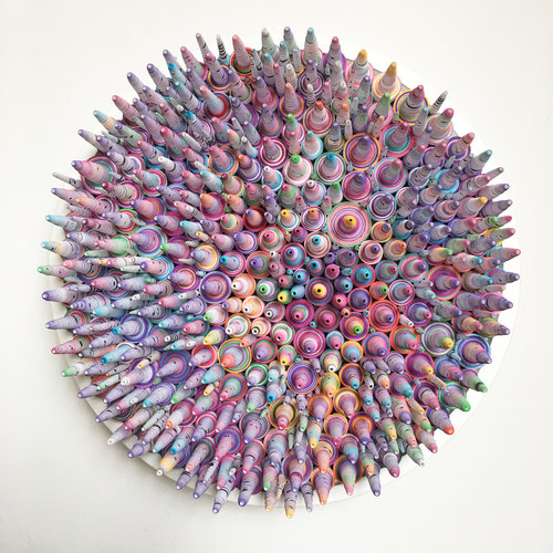 Her intricately constructed biomorphic works conjure a feeling of wonder from everyday materials and suggest new possibilities for mass-produced, disposable materials.