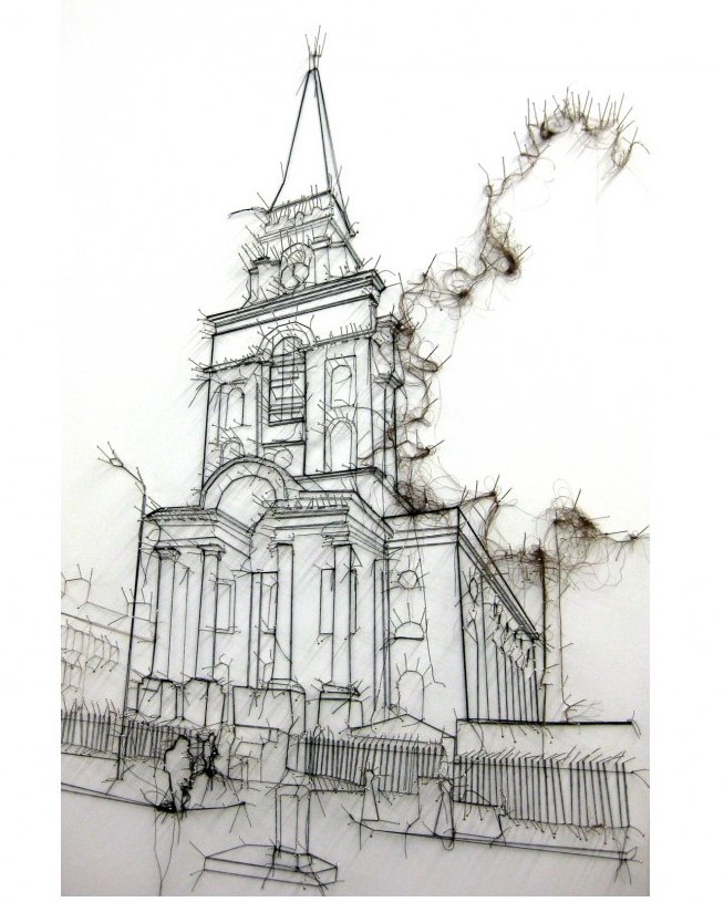 She utilizes such humble materials as plastic tablecloths stretched over chicken wire to uncanny effect.
