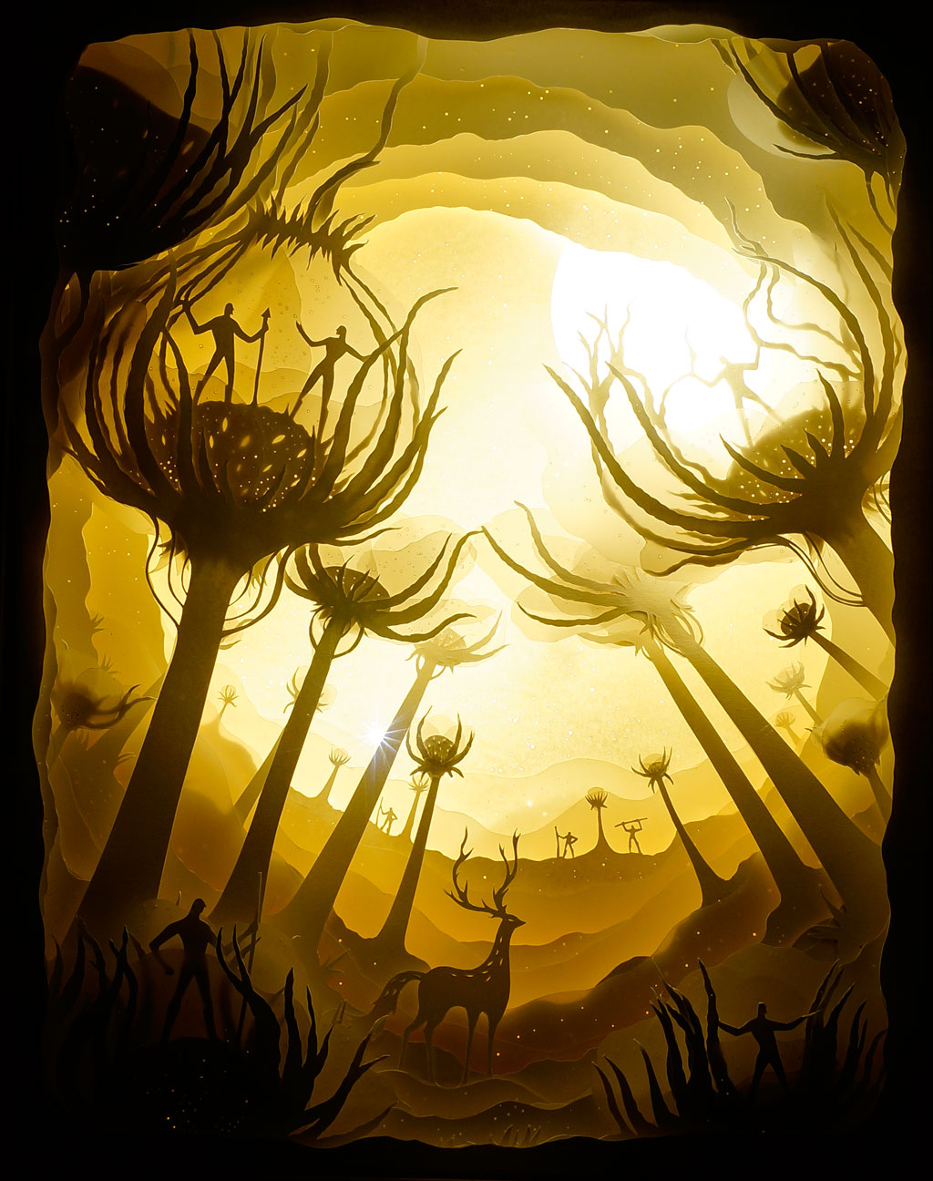 The artist is known for hand-cut wall-mounted paper forms and immersive, site-specific sculptures.