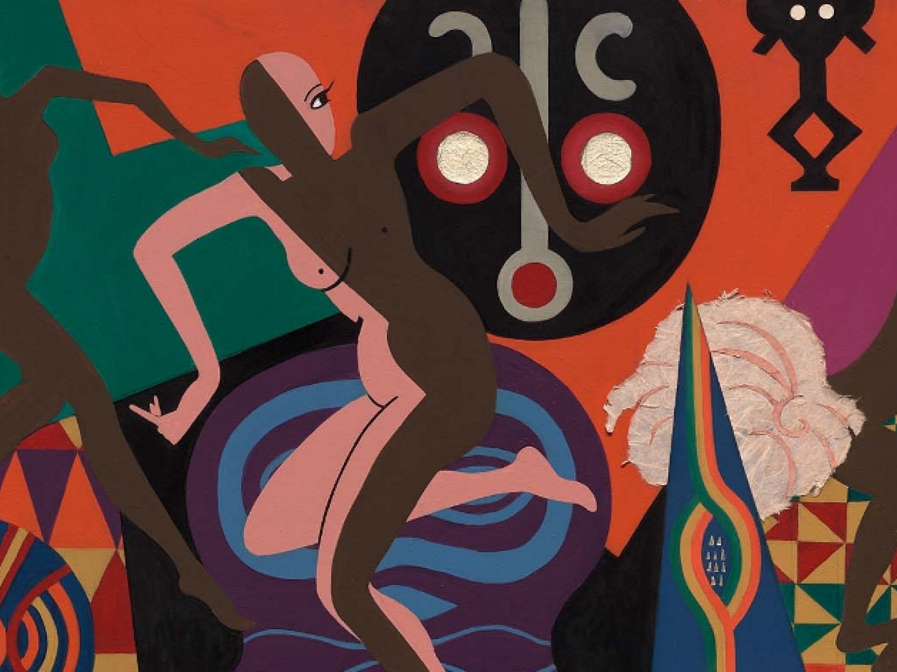 Skillfully integrating aspects of African masks, figures, and textiles into her vibrant paintings, Jones continued to produce exciting new works at an astonishing rate of speed, even in her late eighties.