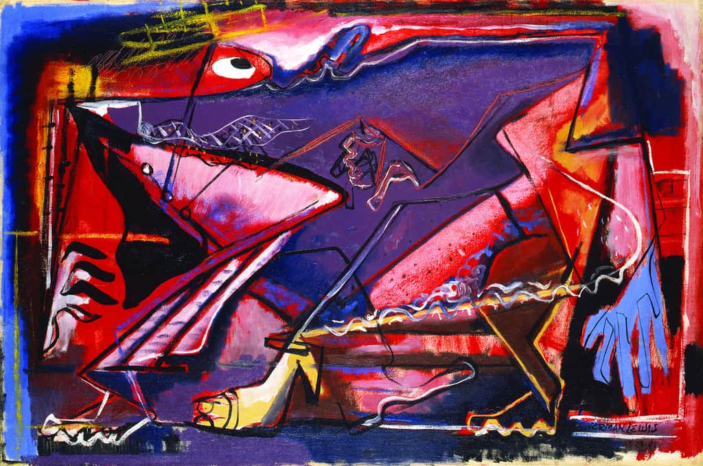Lewis said he struggled to express social conflict in his art, but in his later years, focused on the inherently aesthetic. “The goal of the artist must be aesthetic development,” he told art historian Kellie Jones, “and in a universal sense, to make in his own way some contribution to culture.”