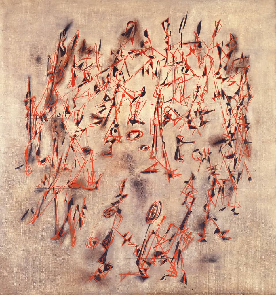 In his last 20 years, Lewis created and developed his very own unique blending of abstraction and figuration. His rhythmic lines and shapes now hinted at figures moving through his layers of colors.