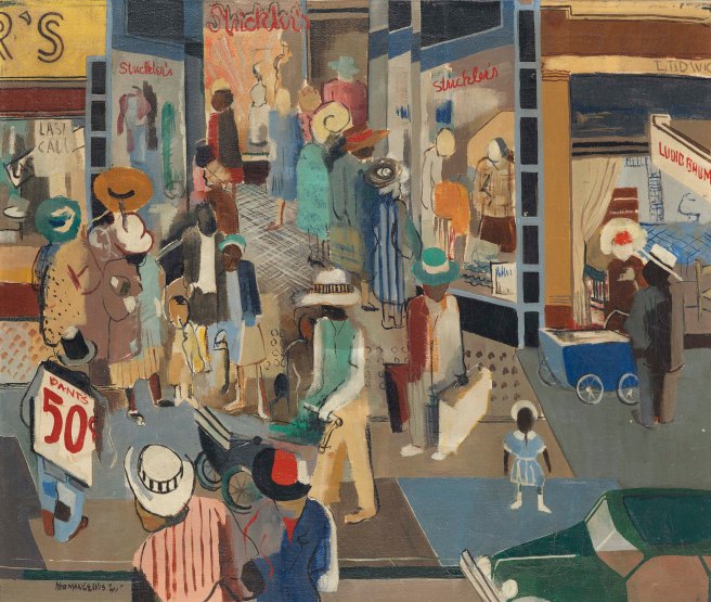 Jones’s long career may be divided into four phases: the African-inspired works of the early 1930s, French landscapes, cityscapes, and figure studies from 1937 to 1951, Haitian scenes of the 1950s and 1960s, and the works of the past several decades that reflect a return to African themes.