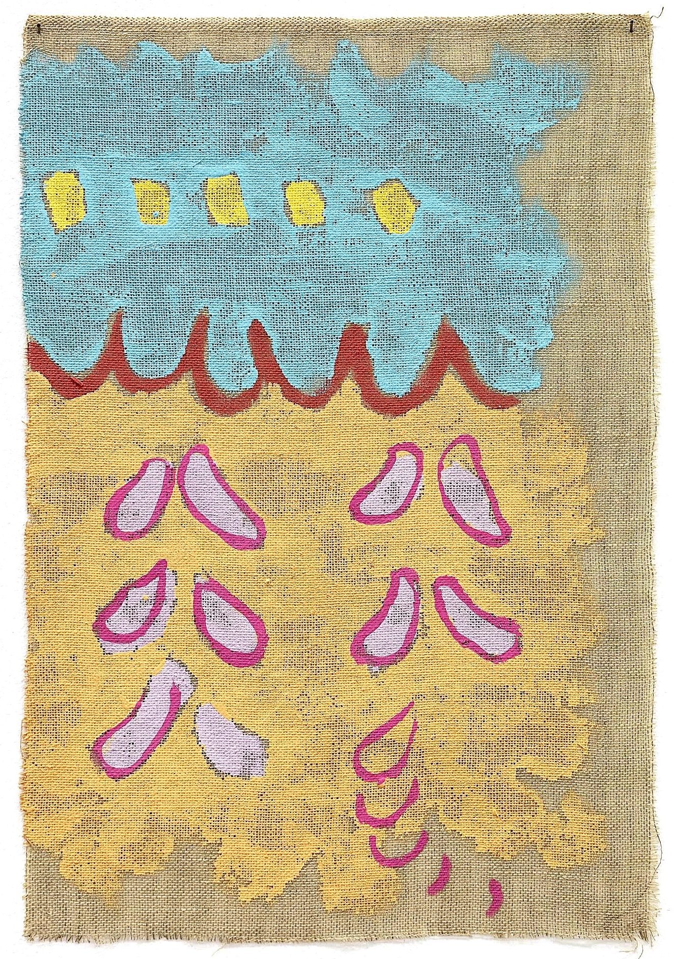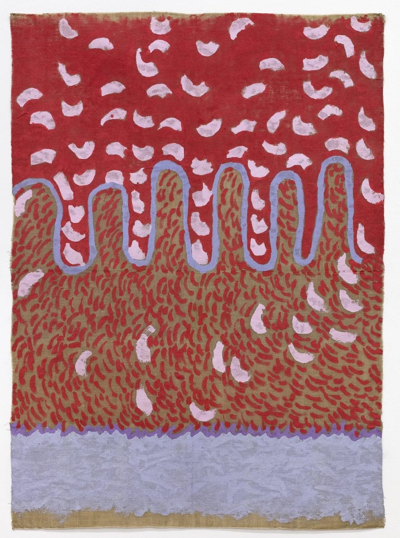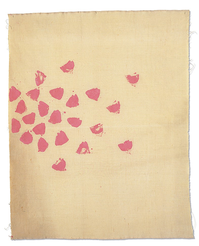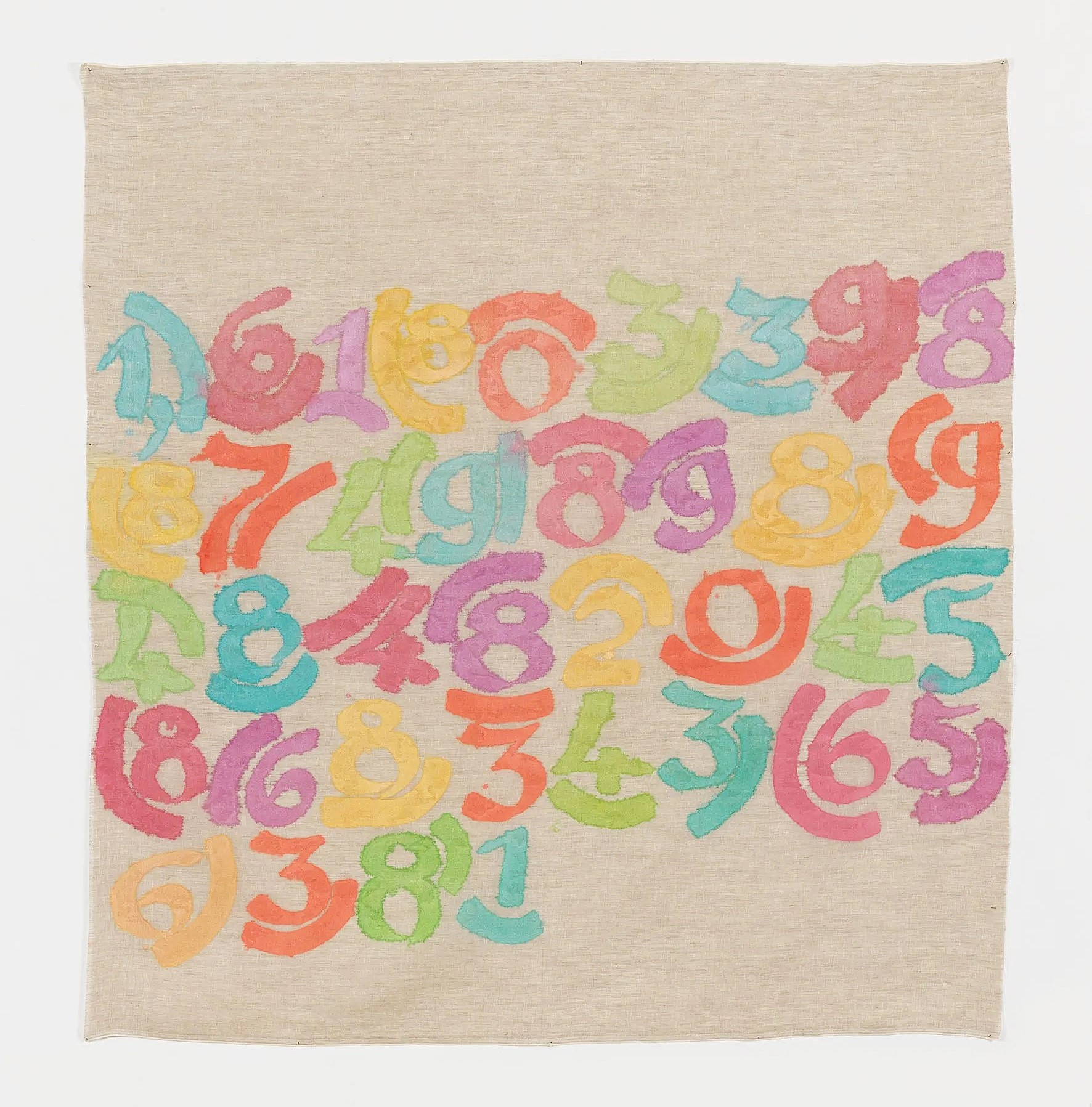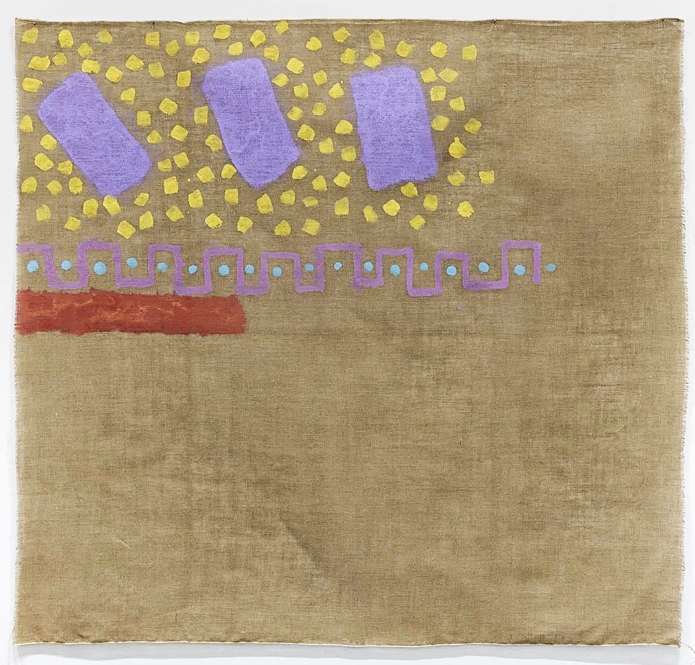 Giorgio Griffa (-1936) is an Italian abstract painter living and working in Turin, Italy.Griffa never received a formal art education. He began painting as a child, taking lessons from local painters at the Circolo degli Artisti in Turin.In 1968, Griffa abandoned figurative painting in favor of a format of abstract painting that still characterizes his work to this day.His visual language is simple and universal, comprising lines, dots, geometric shapes and repeating linear patterns, which are often used alongside letters, texts or numerals.Another distinguishing feature is the artist’s preference for diluted pigments in luminous, desaturated colors.Painting with acrylic on raw un-stretched canvas, burlap and linen, Griffa’s works are nailed directly to the wall along their top edge.When not exhibited, the works are folded and stacked, resulting in creases that create an underlying grid for his compositions. In keeping with his idea that painting is “constant and never finished”, many of his works display a deliberate end-point that has been described as “stopping a thought midsentence.”