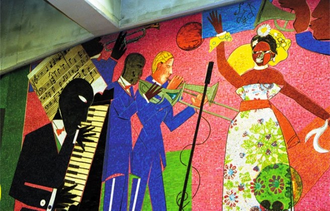 Bearden’s collage work has also been compared to jazz improvisation, as growing up during the Harlem Renaissance, he was exposed to many of the jazz greats.