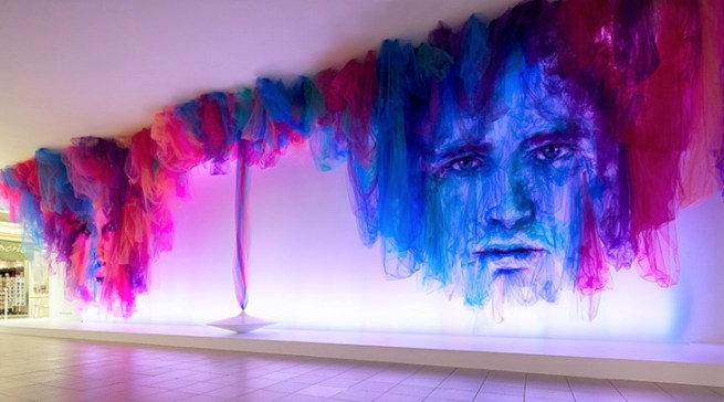 The artist began by collecting vintage textiles, including silk tapestries and wool, and was interested in analyzing and unraveling their histories, taking an interest in how creatures, such as moths, often inhabit such materials.