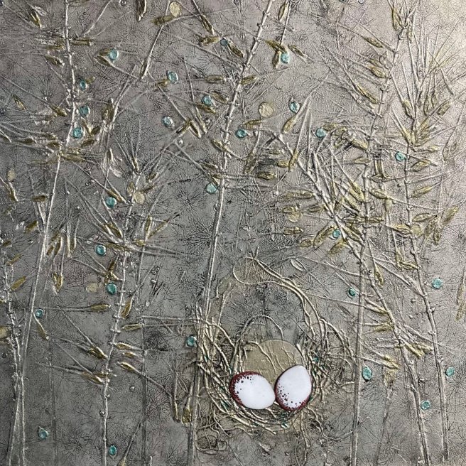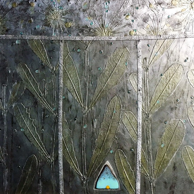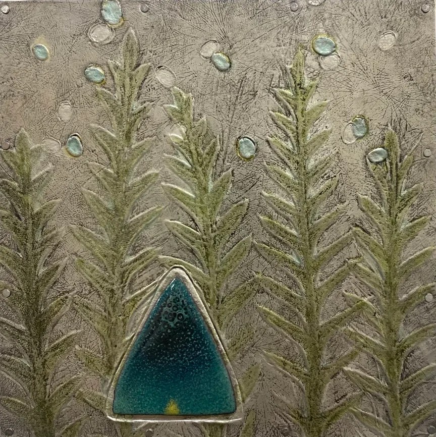 She often works with aluminum and copper as well, and always incorporates enameled copper tiles into her compositions.