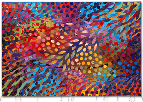 A culmination of six months spent thinking about and working on it, here is the Gateway Arch quilt. I finishing sewing on the binding while watching the Super Bowl (Yay KC Chiefs!) I feel an odd combination of elation, satisfaction and relief. The finished object is largely what I had envisioned………