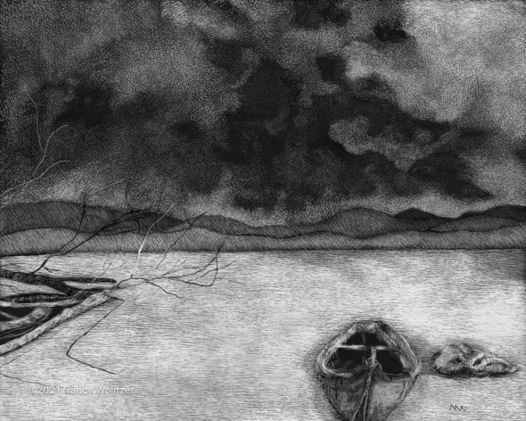 Home after almost two weeks of hanging with “the guys” … my husband, his best friend, my son, his best friend, and another newbie. I started sketching; they fished. I did some proofreading of an old novel; they fished. I played video games or watched movies on my iPad; they fished.