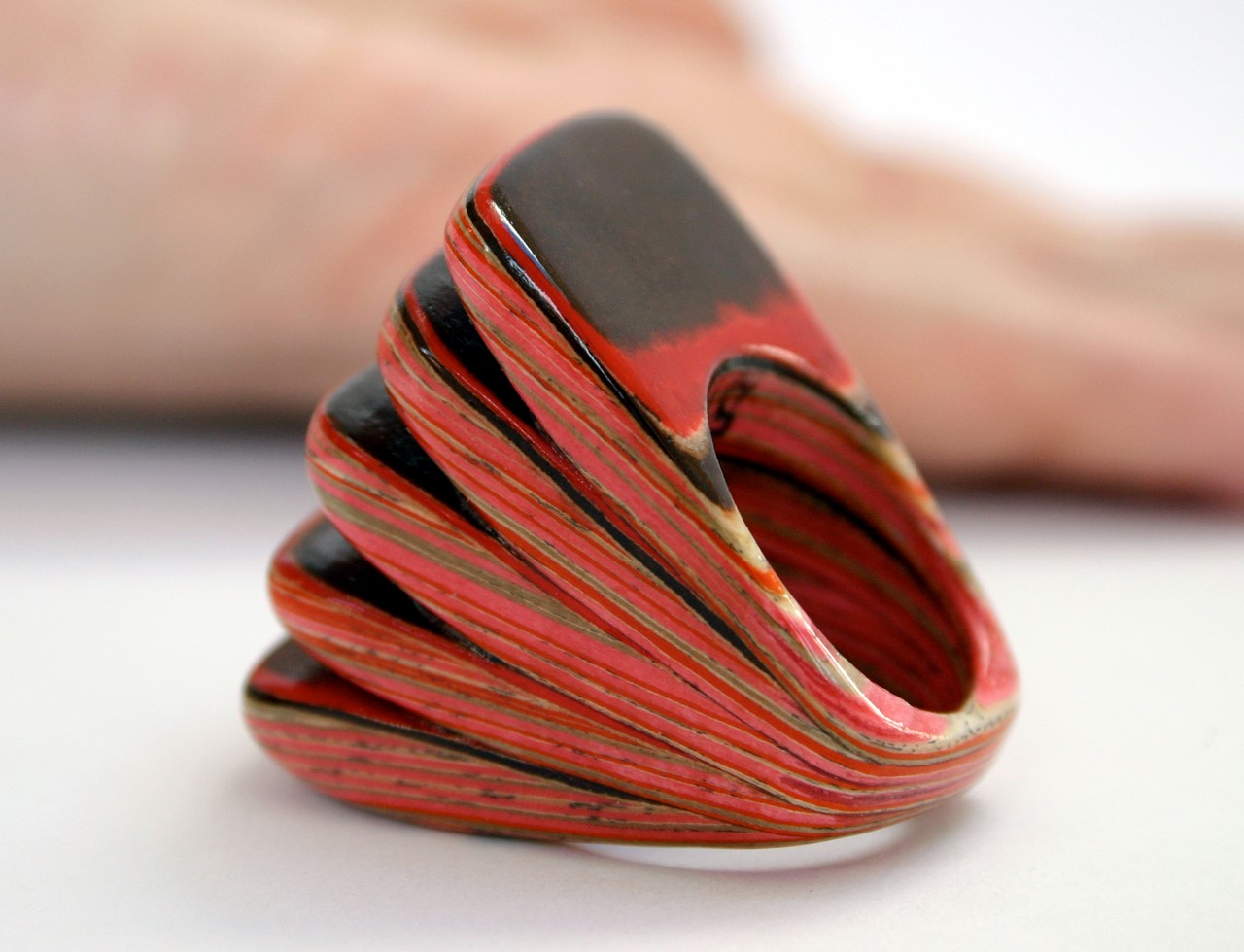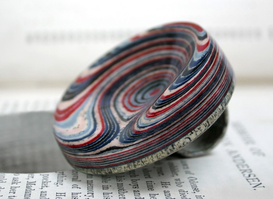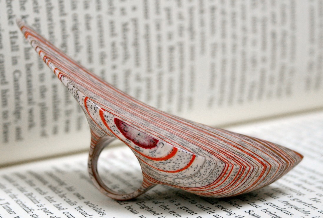 Jewelry maker Jeremy Mays designs wearable pieces from the layered pages of vintage books, transforming their content into unique works that are nearly impossible to trace back to their paper origin.