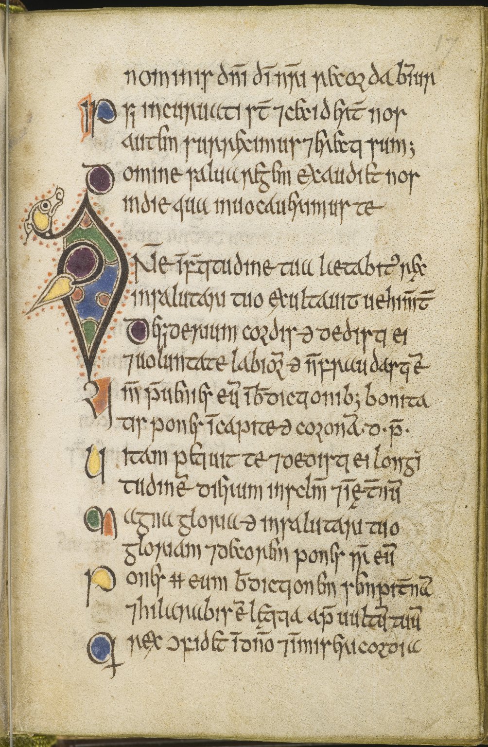 The Celtic Psalter (University of Edinburgh MS 56) is a 114-page, 11th-century psalter likely to be the oldest Scottish book to be still kept within Scotland. It contains extraordinary illuminations in vivid green, red, purple and gold, and the Irish miniscule script is bold and clear and gives a text of the Psalms in Latin that can still be read today.