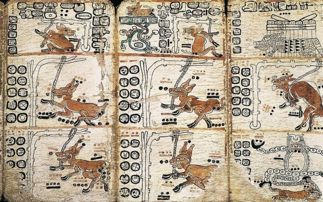 The Madrid Codex – also known as the Tro-Cortesianus Codex – is one of the only surviving books attributable to the pre-Columbian Maya culture, dating to the Postclassic period of Mesoamerican chronology ( circa 900–1521 AD). It a richly illustrated glyphic text and one of few known survivors of the mass book-burnings by the Spanish clergy during the 16th century. The Codex consists of 56 sheets painted on both sides to produce a total of 112 pages.