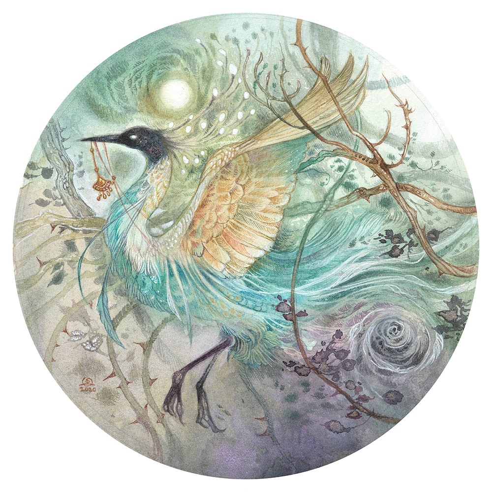 Early on, Law’s career moved through the illustration and the gaming world, but in recent decades she has focused more on her own delicate and yet intricate paintings.
