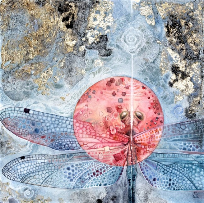 Look close and find fairies, birds, cats, dragonflies, and all kinds of mystical creatures in her soft pastel colors.