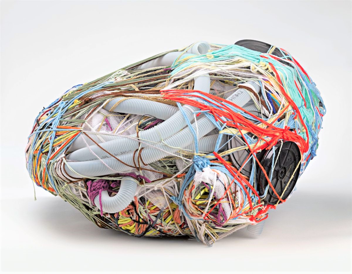 According to England, “My art is an exploration of texture, dimension, and scale, in which I use traditional hand techniques such as knotting, basketry, twining, and weaving, to create expressive and fluid forms.”