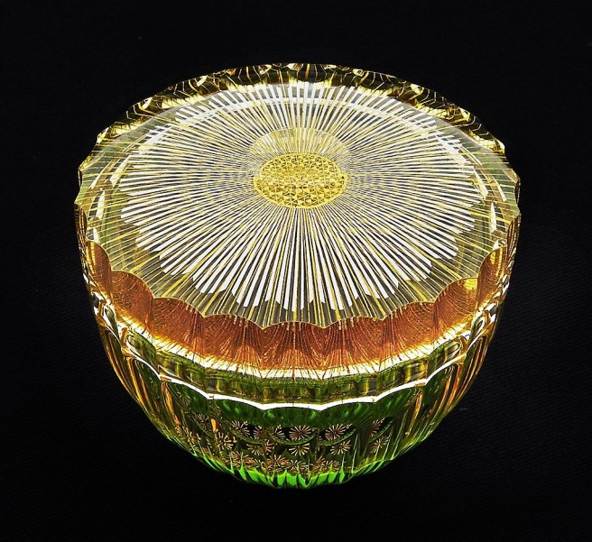 Akane Yamamoto has developed a new and original field of art known as “Kirikane Glass,” which involves forming various patterns using the age-old kirikane decorative technique and encasing them in glass.