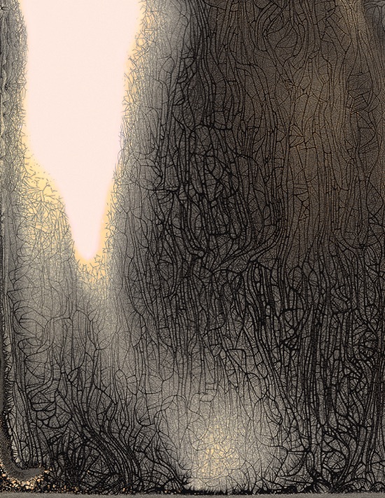 The printmaking aspect is the resistance he puts on the paper. He uses chemistry to create the final product.