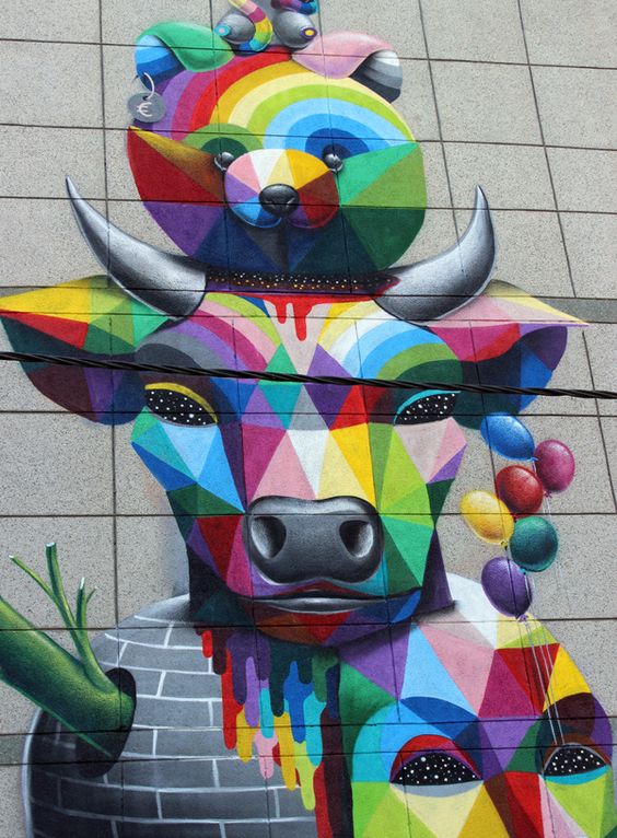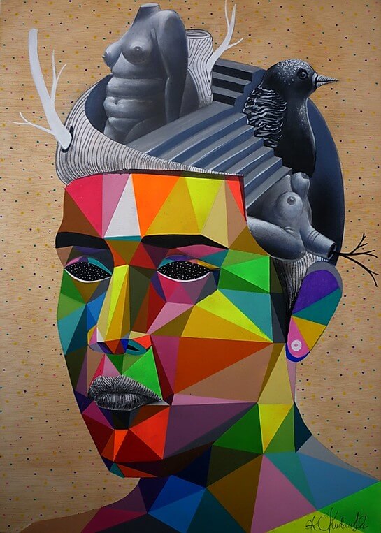 Okuda’s work can be classified as pop surrealism with a clear essence of street or urban art.