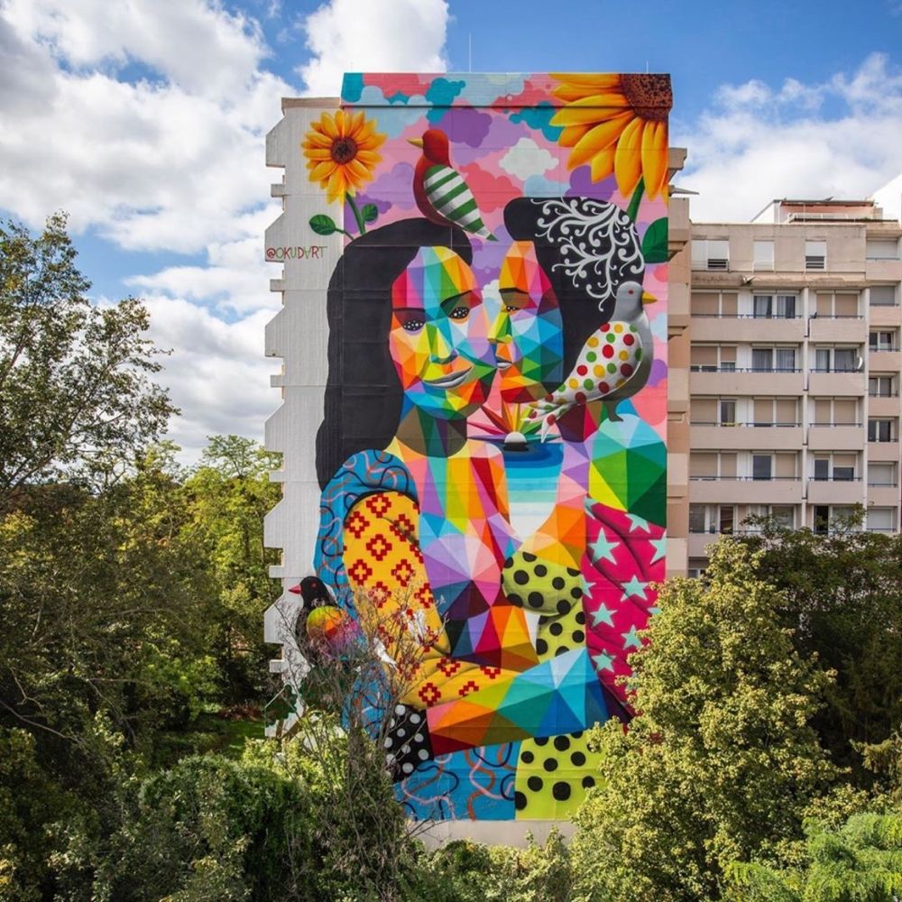 More of Okuda’s bright, colorful work can be found at https://okudasanmiguel.com/.