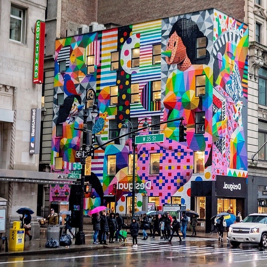 He started with graffiti on walls and trains, but little by little his style evolved to a major point. Now it is common to see his enormous works in some buildings around all continents, as well as exhibitions in different places.