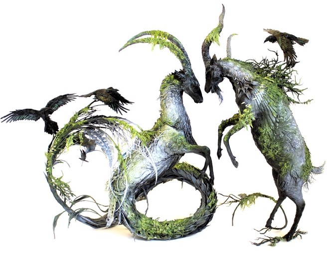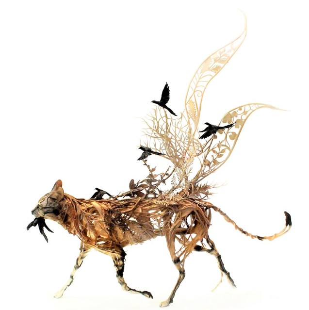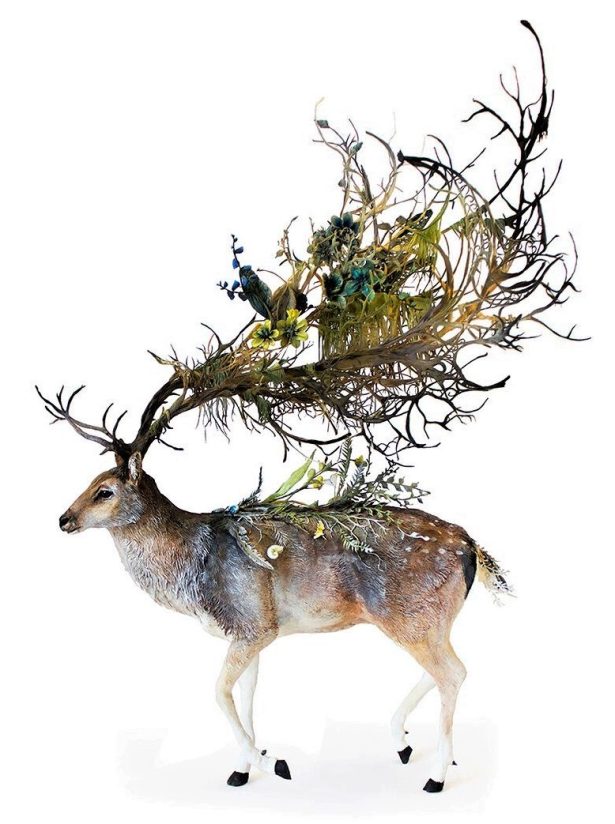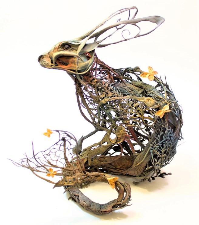 Artist Ellen Jewett refers to her sculptural work as “natural history surrealist sculpture,” a blend of plants, animals, and occasionally human-made structures or objects.Her artwork is deeply informed by an extensive background in anthropology, medical illustration, exotic animal care, and even stop-motion animation, all of which accentuate the biological structure of each piece, while freeing her imagination to pursue more abstract ideas.Over time, Jewett has become more focused on minimizing materials and relying a negative space.