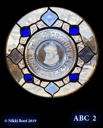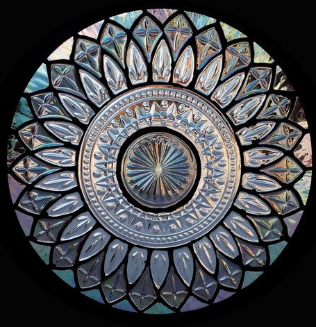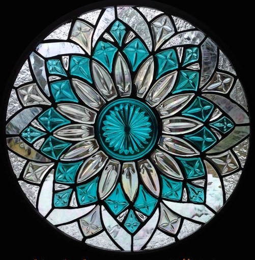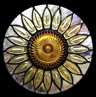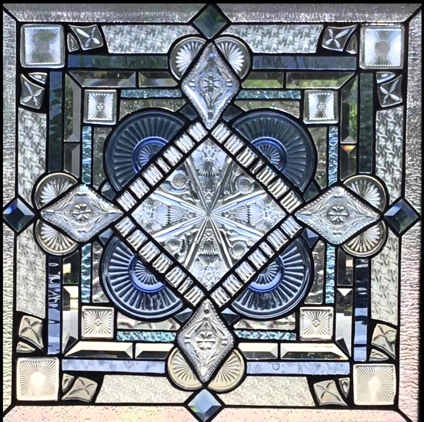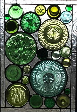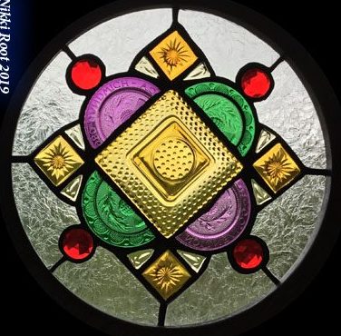 In addition to her beautiful traditional stained glass, Root now specializes in one of-a-kind, 3-dimensional glass creations which are skillfully crafted from a variety of individually hand-cut vintage bottle and glassware bottoms.Root collects Depression glassware and any interesting glass she can get her hands on to transform into windows, framed pieces and many other things.Root’s passion for glass work began 20 years ago when her family moved from Atlanta, Ga. to build a home in Providence.Their Atlanta home had stained glass windows, a comfort she insisted on having in Utah.To avoid the high cost of purchasing custom designs from a glass company, Root decided to try making it herself..This rest is stained glass history.“Stained glass speaks,” Root shares.“Once you have it in your home, it’s really hard to live without it.”“So I took a class and learned how to cut and solder, and then I took off from there.”