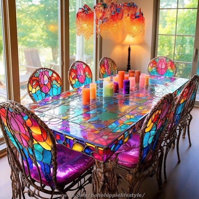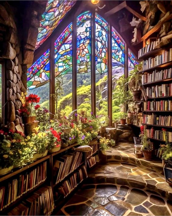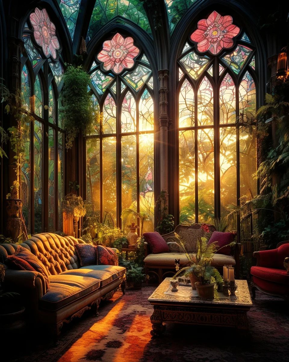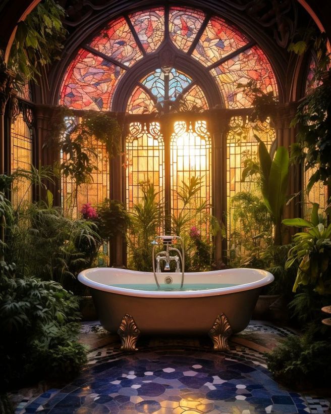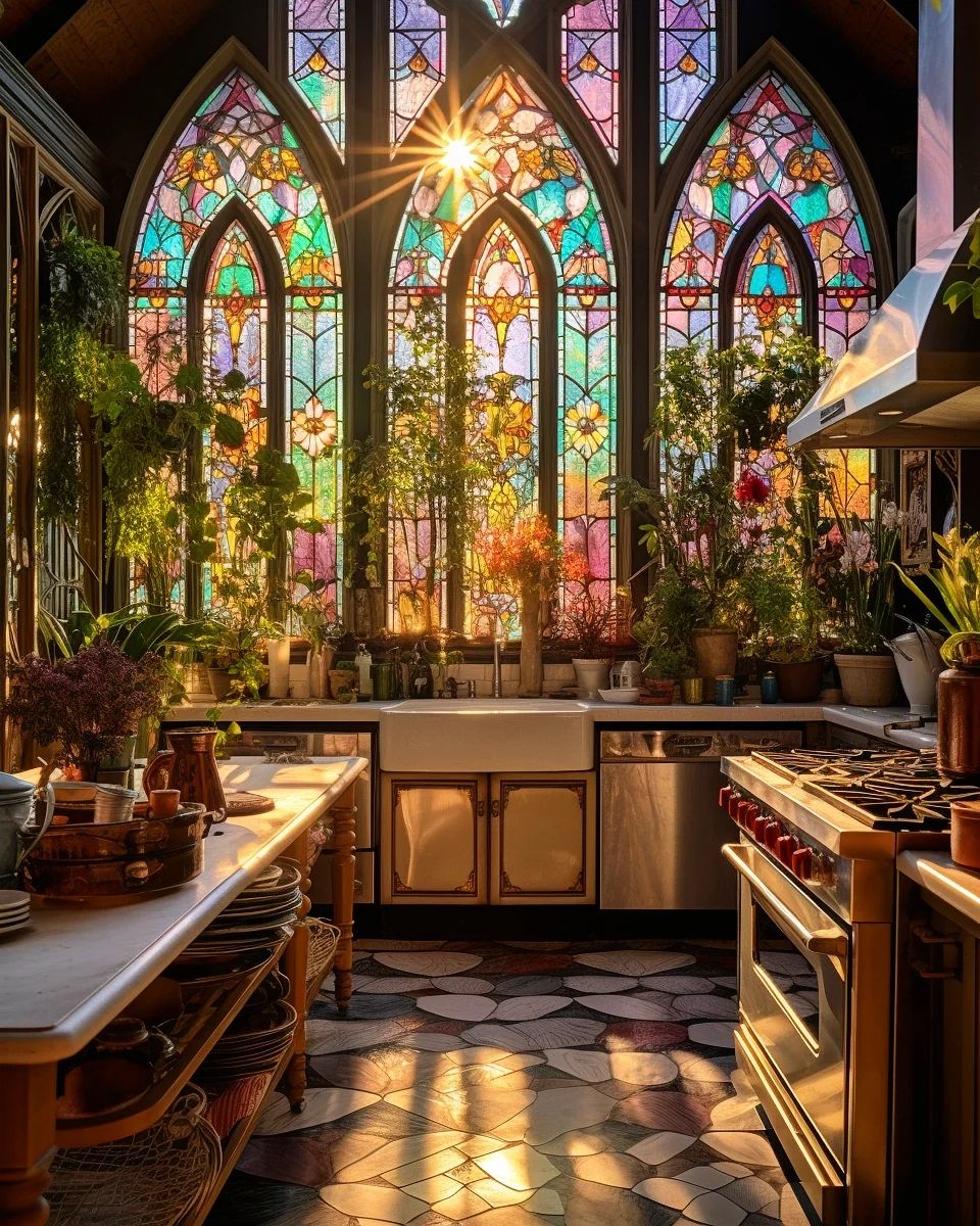 You know how one thing leads to another and another and another. Well, a few amazing stained glass room pictures showed up on my Internet feed, and before you knew it, I was collecting images of stained glass rooms.