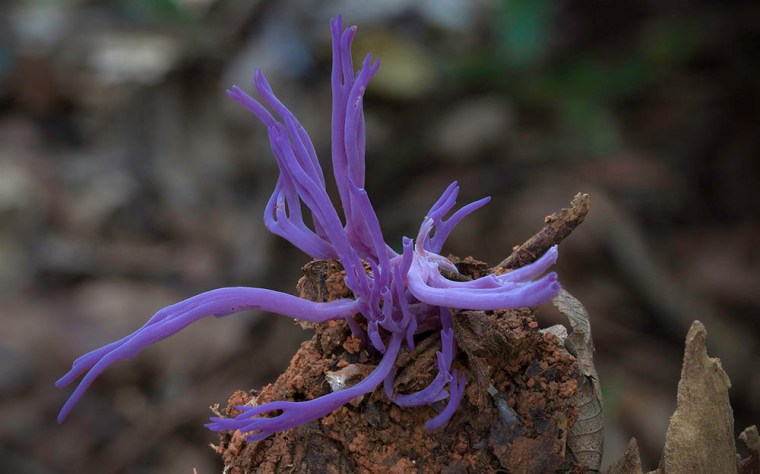 A handful of the images seen here, namely the “hairy” fungi called Cookeina Tricholoma, were photographed last year on a trip to Xishuangbanna, China and Chiang Mai, Thailand.