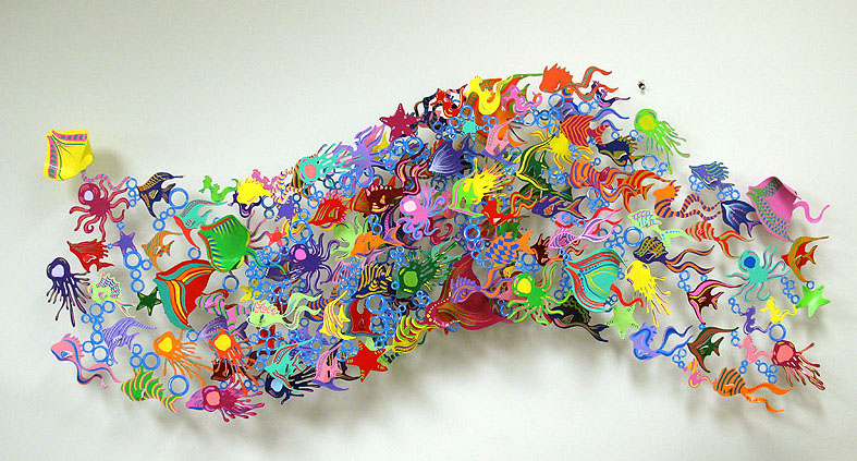 Kracov’s magical touch with a vibrant color palette turned into unique steel wall sculptures.