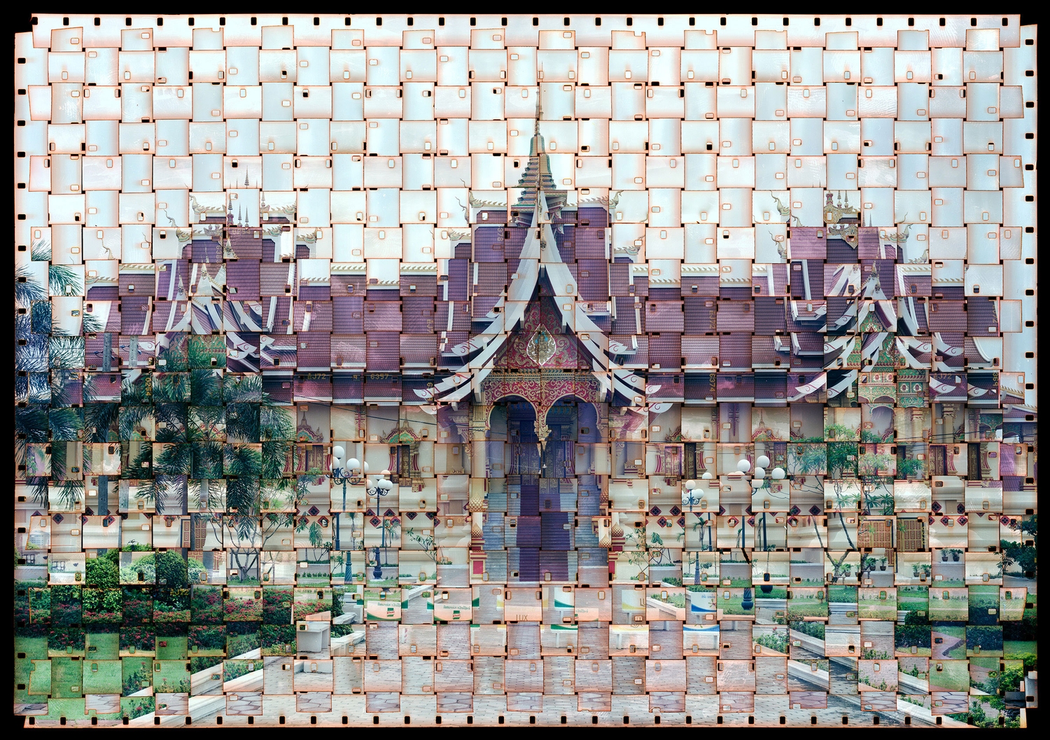 The final image is a blend of mediums: both photograph as well as woven textile; by threading the film together, Park creates beautifully captivating scenes with textured distortions.