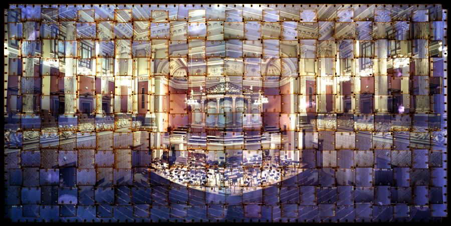 Park then exposes two images in a large format 8×10″ camera using sets of vertical and horizontal strips which are woven together to create a final print.